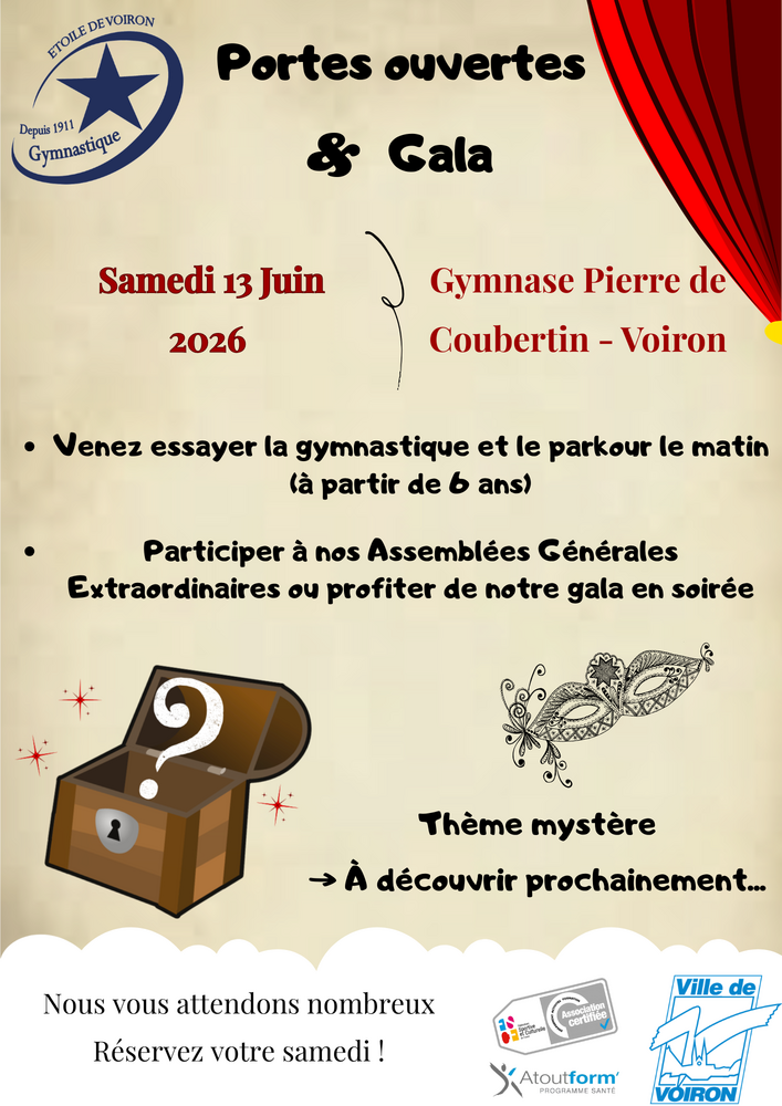 - Nos portes ouvertes, invitez vos proches à essayer la gymnastique ou le parkour (à partir de 6 ans)